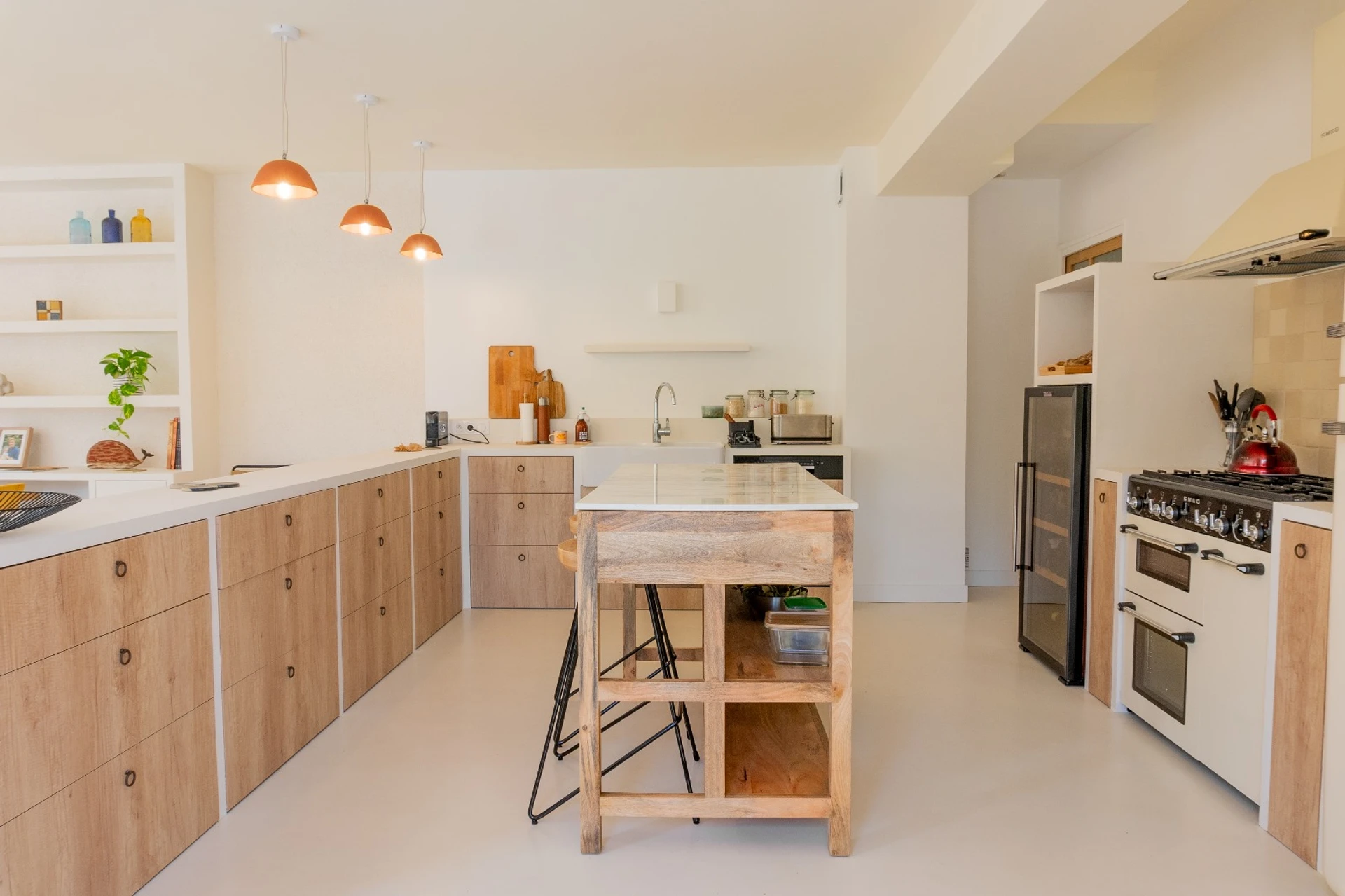 Cuisine contemporaine bois et béton ciré